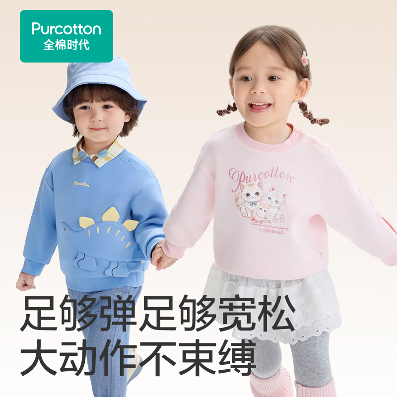 全棉时代儿童卫衣女童男童上衣卫衣宝宝纯棉宽松秋冬新品 保暖上衣