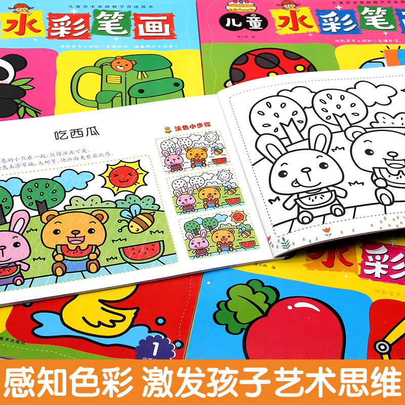 6岁女童填色 2到3 水彩笔画画本儿童幼儿园宝宝涂鸦绘画本不透色男女小孩涂色书中大班空白描印小学生一年级美术学画套装