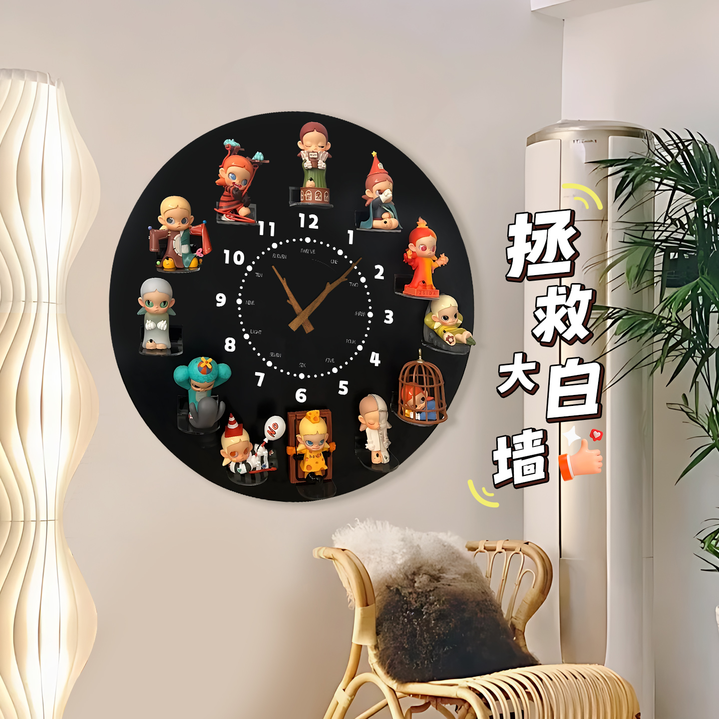泡泡玛特diy盲盒星星人时钟相框挂钟表儿童房二次元 饰画框 小野装