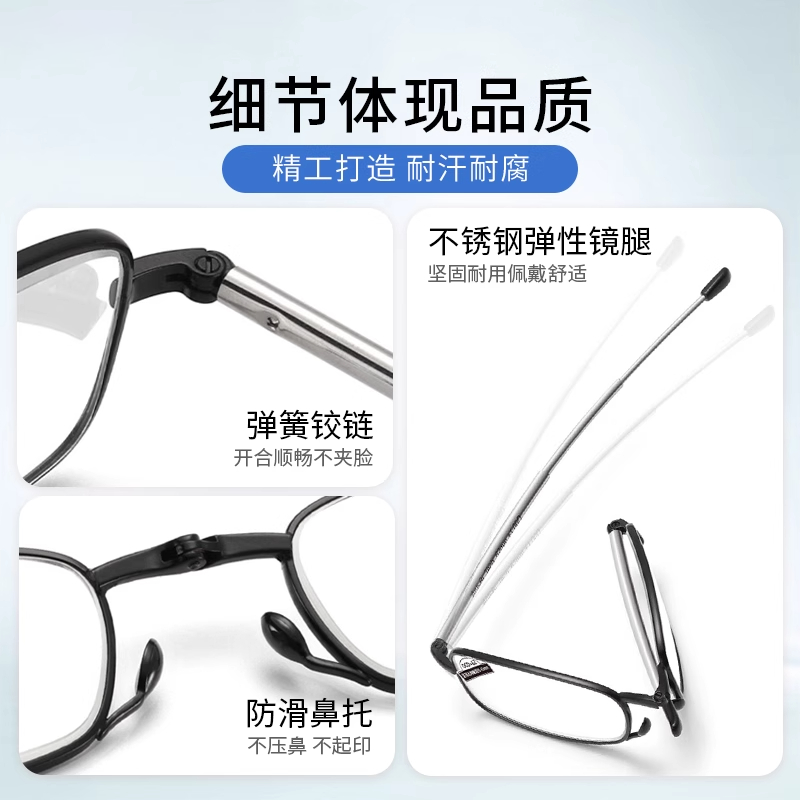 正品 进口高清老花镜男士 超轻折叠便携钥匙扣防蓝光中老年眼镜女款