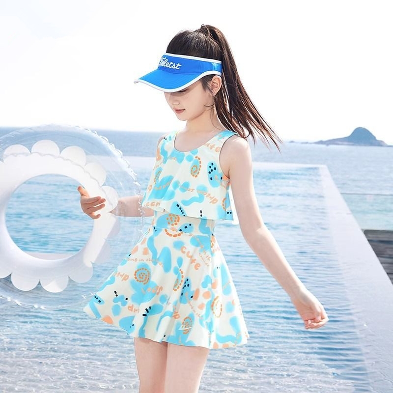 时尚 儿童游泳衣女孩女童泳衣连体中大童新款 宝宝甜美温泉日系泳装