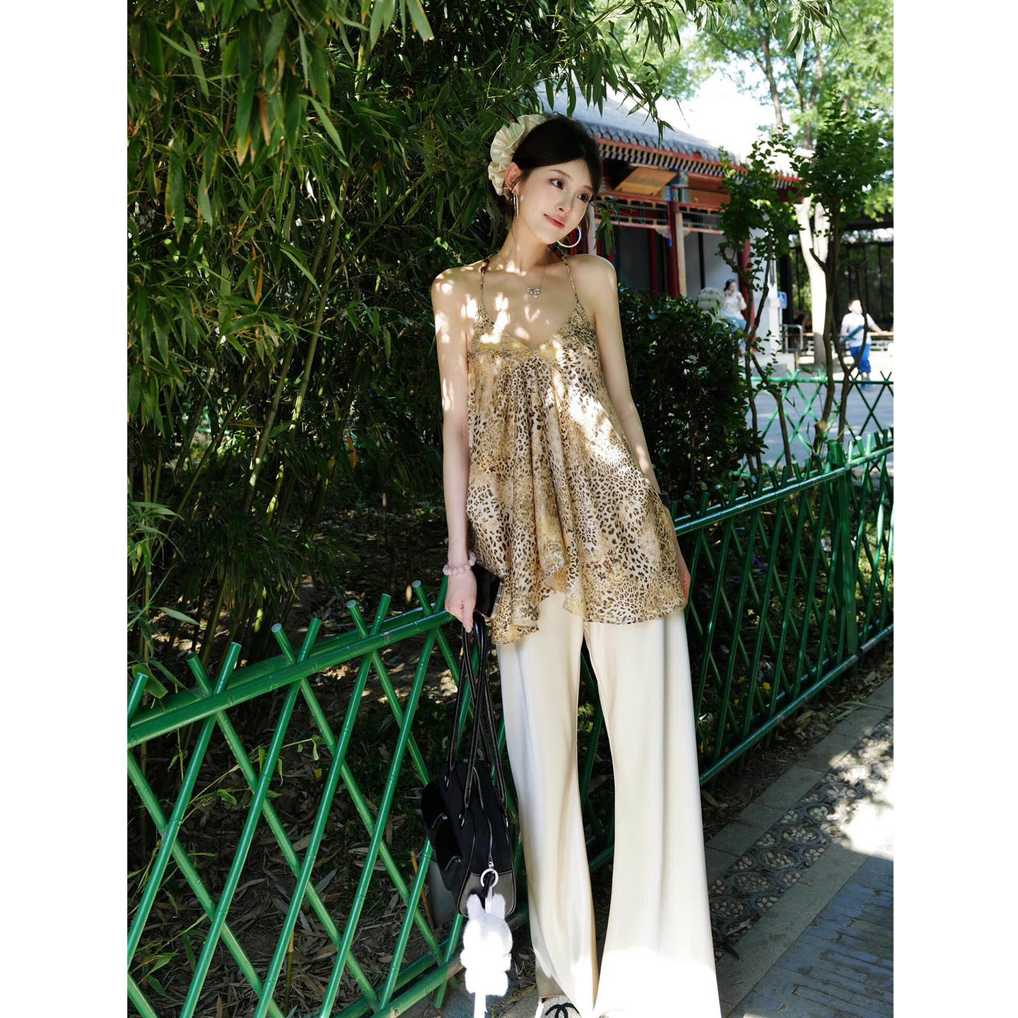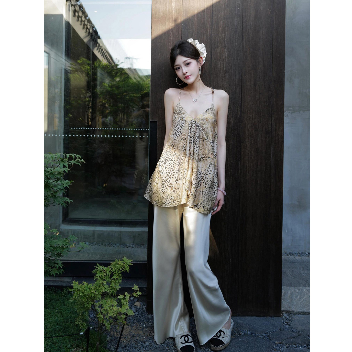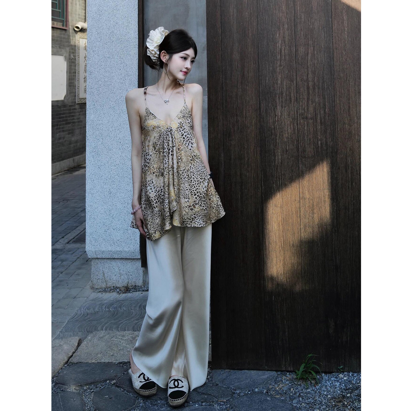 套装 XZY 微胖辣妹性感豹纹挂脖背心上衣女25年夏御姐气质缎面长裤