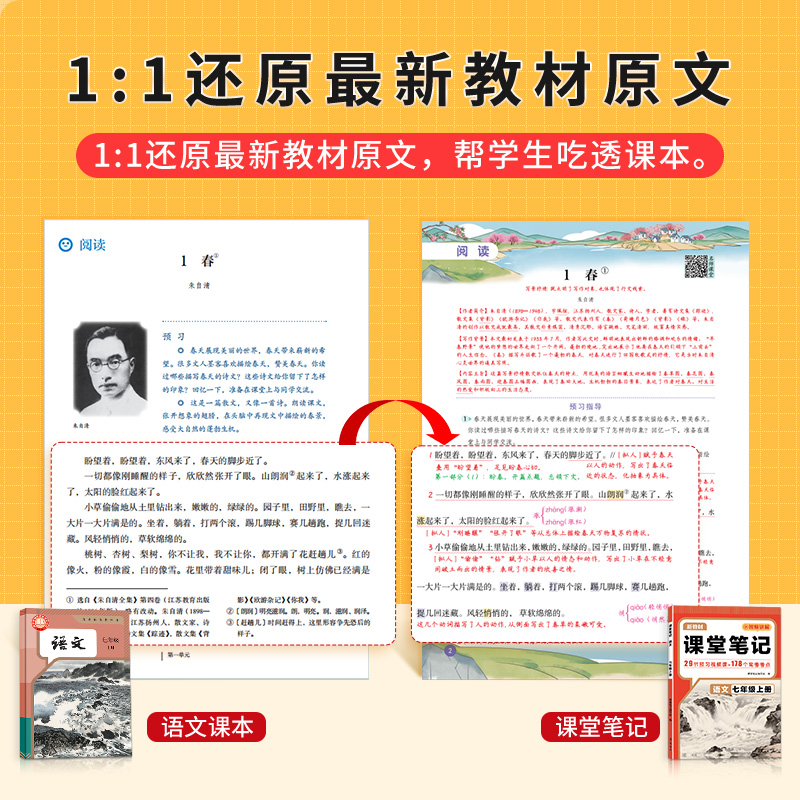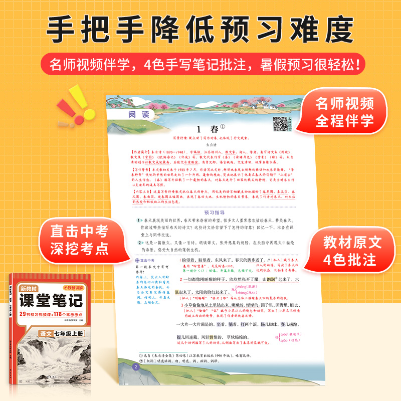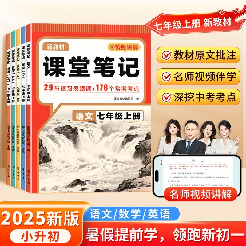 小升初课本预习书同步新教材初中初一上课本原文课文批转视频讲解教辅 外研版 2026七年级上册课堂笔记语文数学英语人教版 北师版