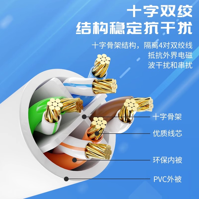 普超六类万兆千兆纯铜网线家用宽带路由器连接线网络线超五类高速