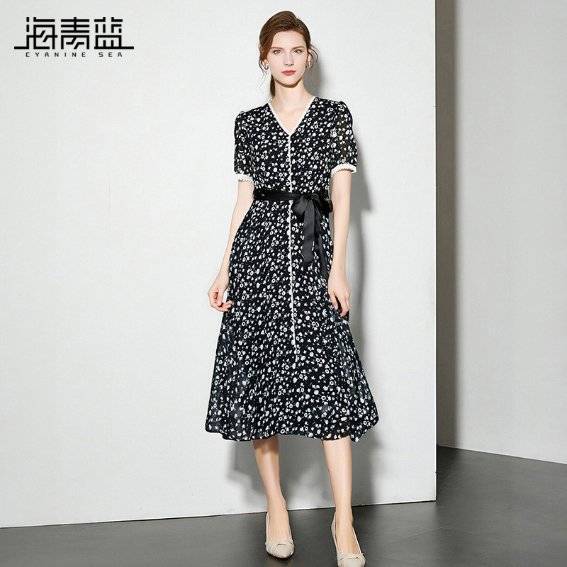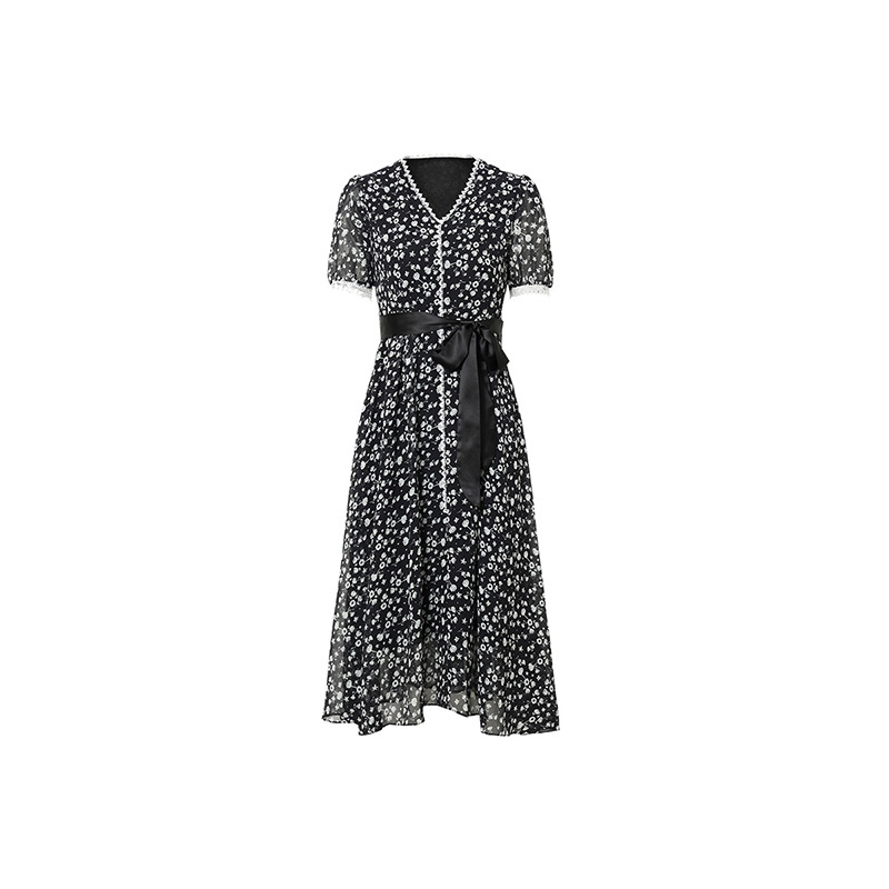 千金短裙 连衣裙女秋冬法式 韩语琳 赫本风黑色丝绒长袖