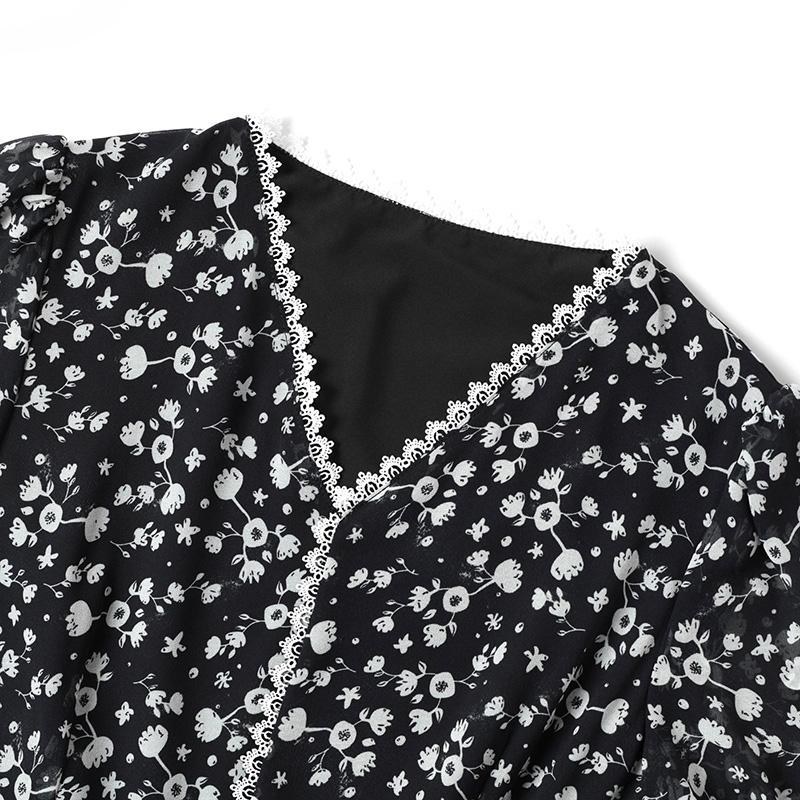 木耳边刺绣拼接度假风a字短裙 新款 妮茨维杏色灯笼袖 连衣裙女秋季