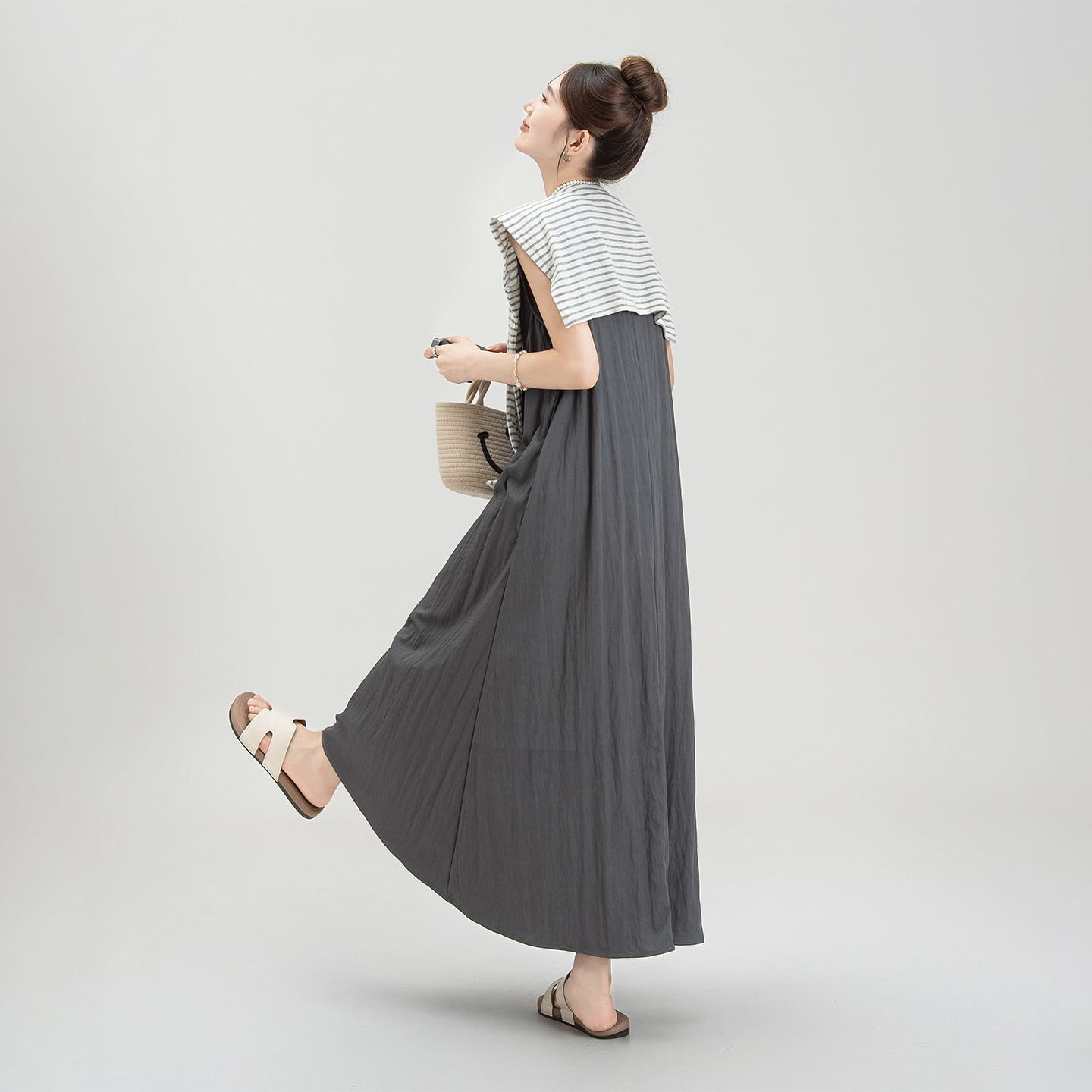 中长款 宽松大码 过膝休闲懒人裙 T恤女2024夏季 纯棉连衣裙孕妇短袖