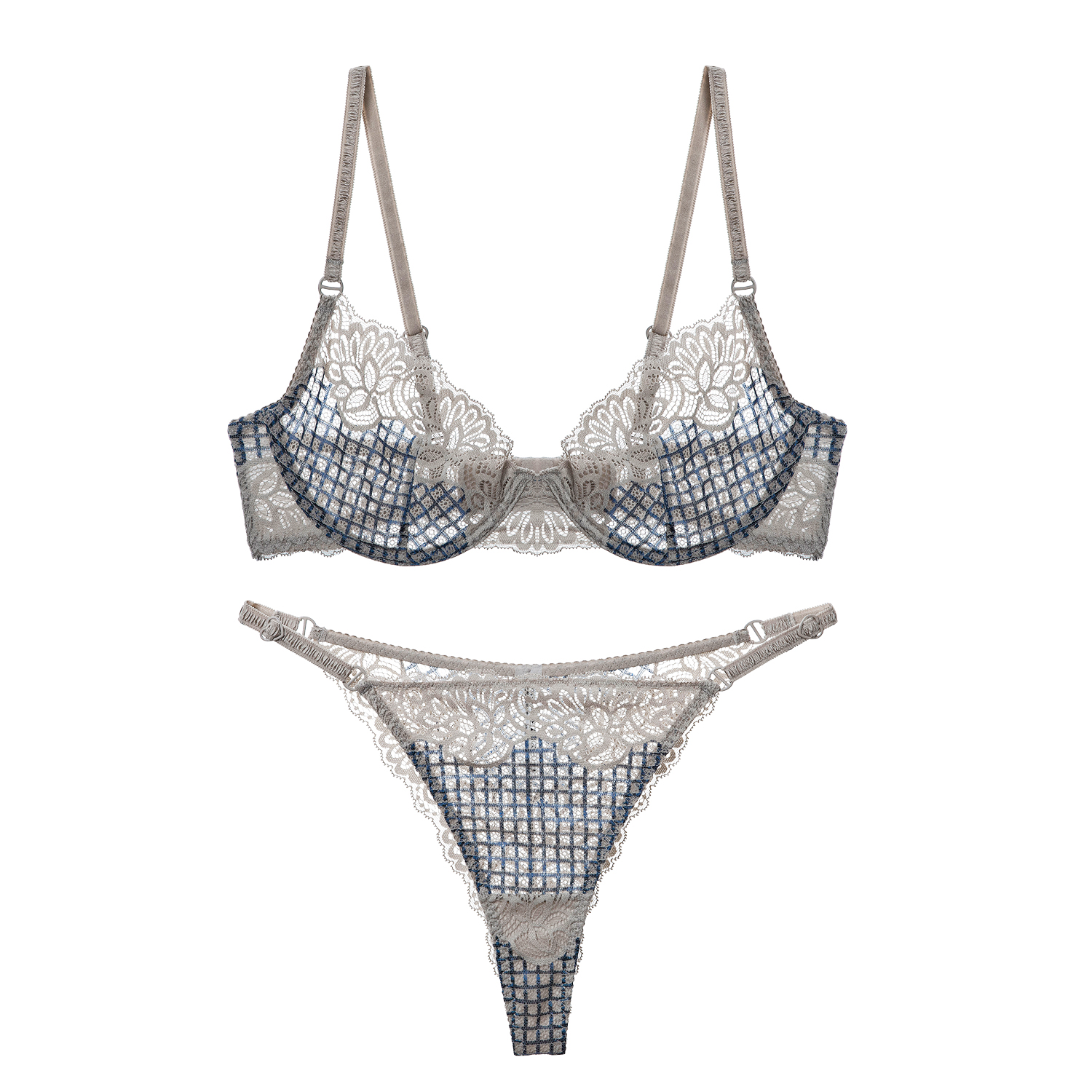 必买百搭裸色蕾丝性感菱格薄款 文胸内衣套装