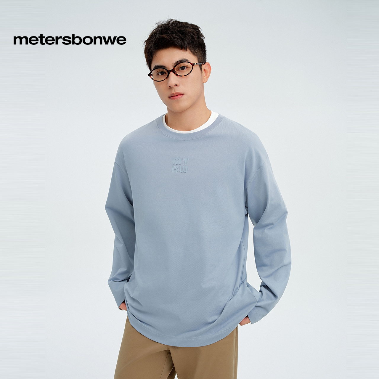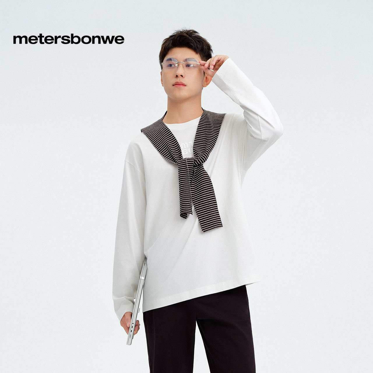 白色纯色长袖 新款 美特斯邦威T恤男2025秋季 恤圆领上衣 商场同款