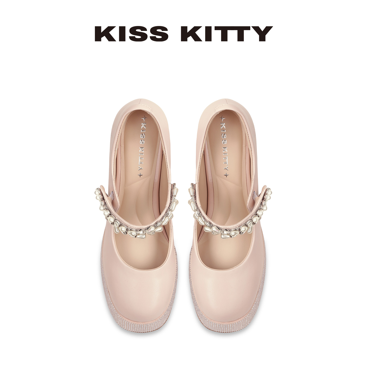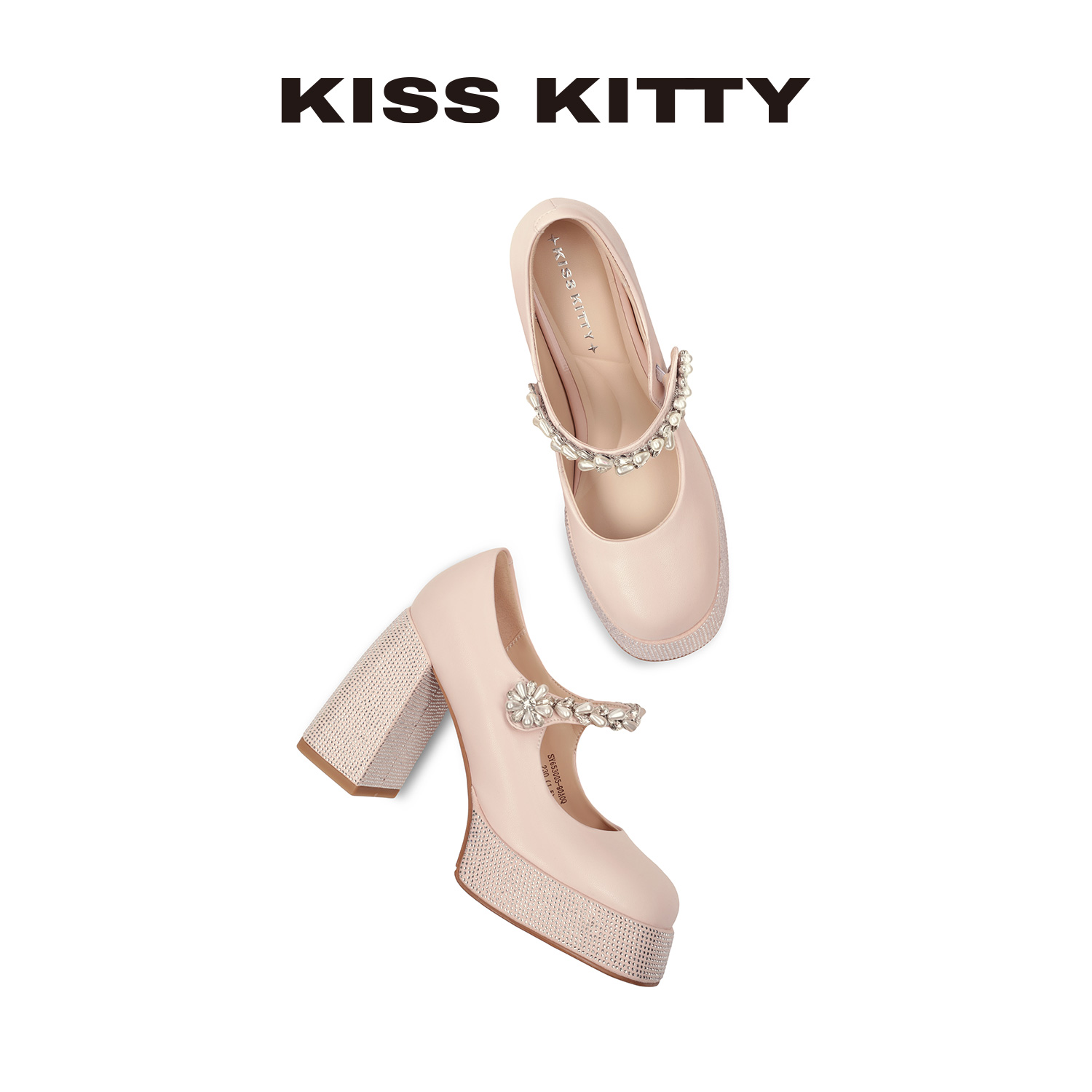 小个子玛丽珍女鞋 粗跟增高单鞋 女2025新款 KISSKITTY粉色高跟鞋