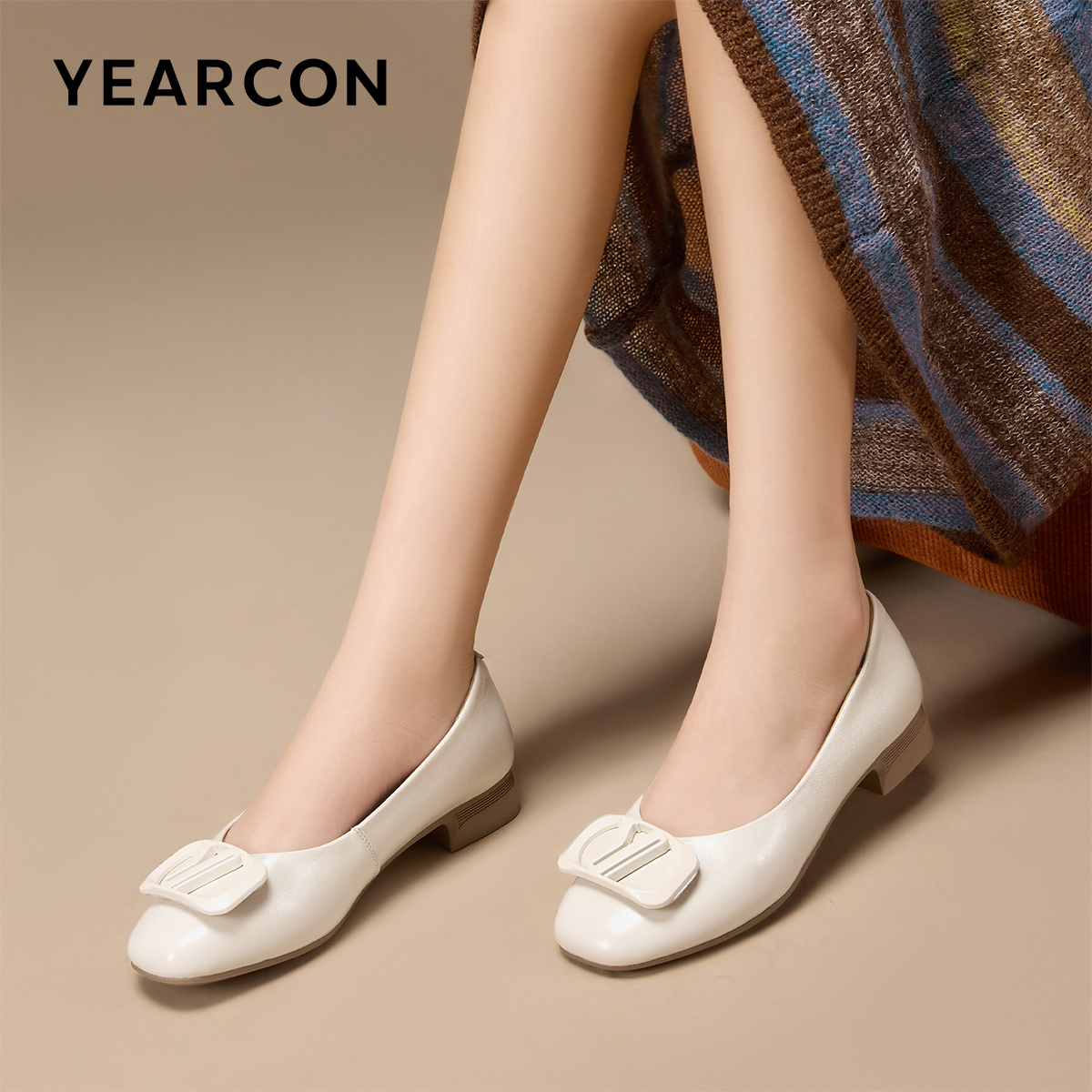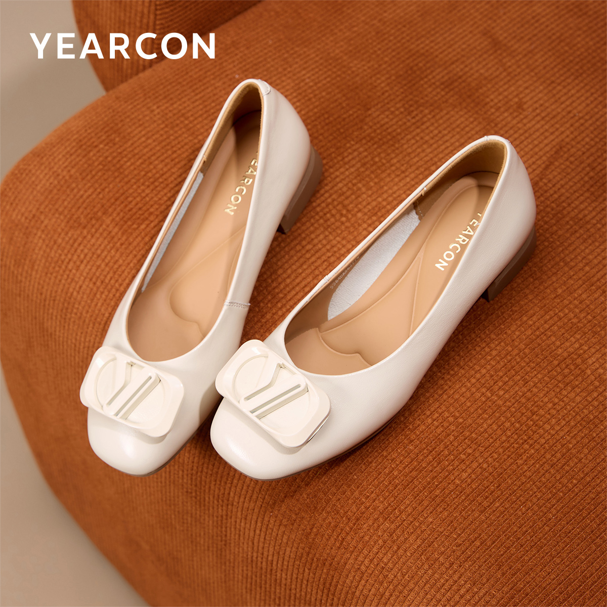羊皮浅口方头舒适时尚 单鞋 复古法式 秋季 意尔康官方正品 新款 女鞋
