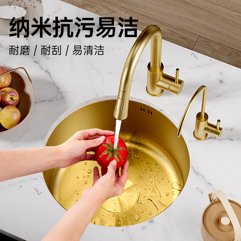 意大利意狄讴不锈钢圆槽吧台阳台小单槽家用厨房洗菜盆金色4118