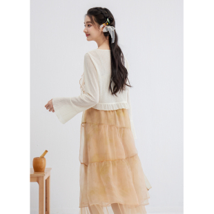 休闲国风吊带针织小衫 紫涵新中式 新款 裙女夏季 网纱长裙多件套 套装