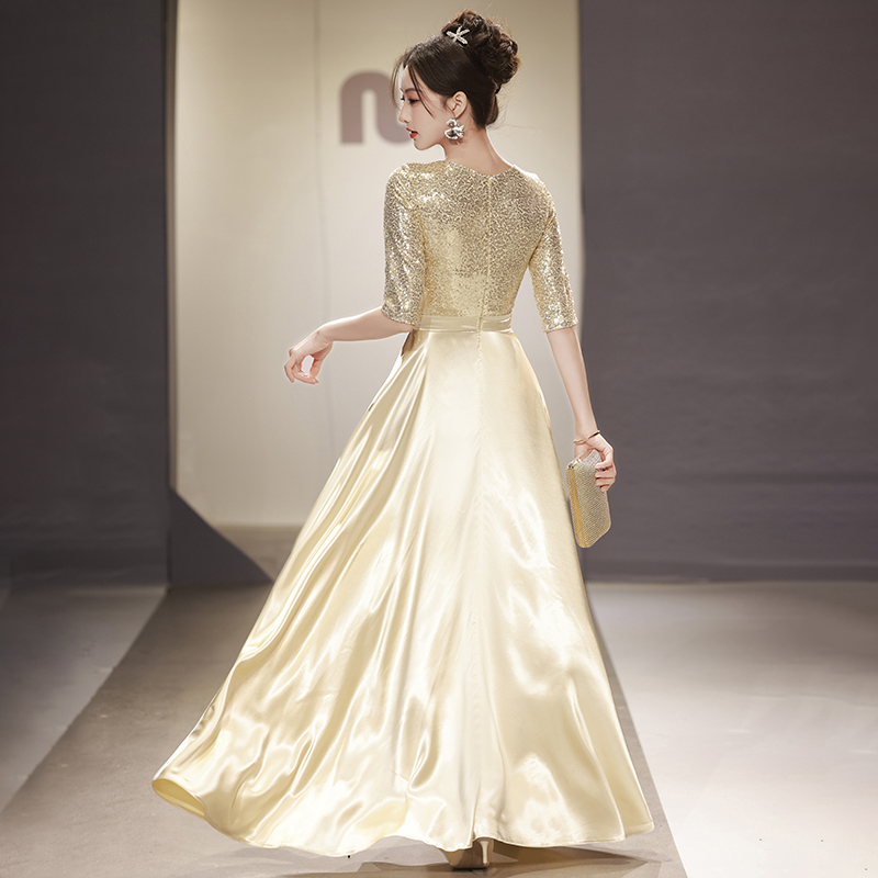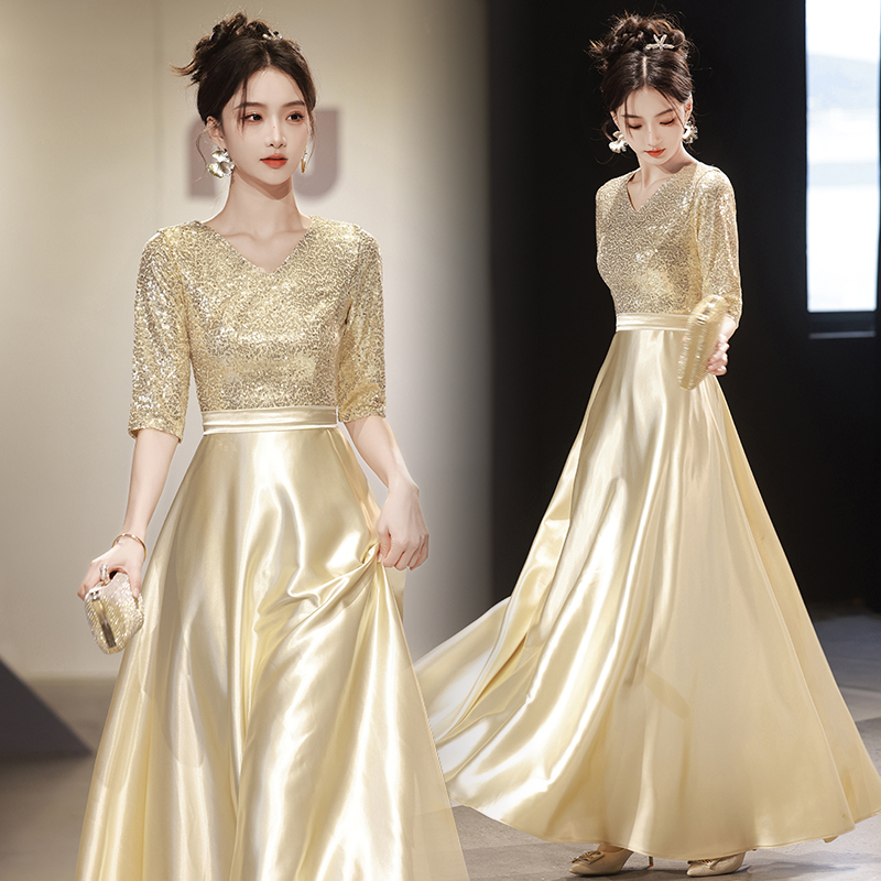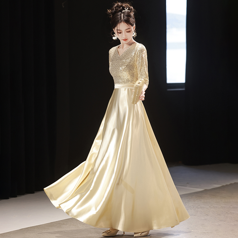 香槟色合唱服团长裙演出晚礼服女主持成人指挥服舞台比赛表演服装