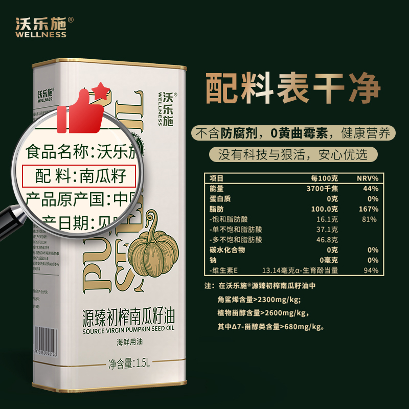 源臻物理压榨南瓜籽油家庭食用油植物油热炒凉拌1500ml