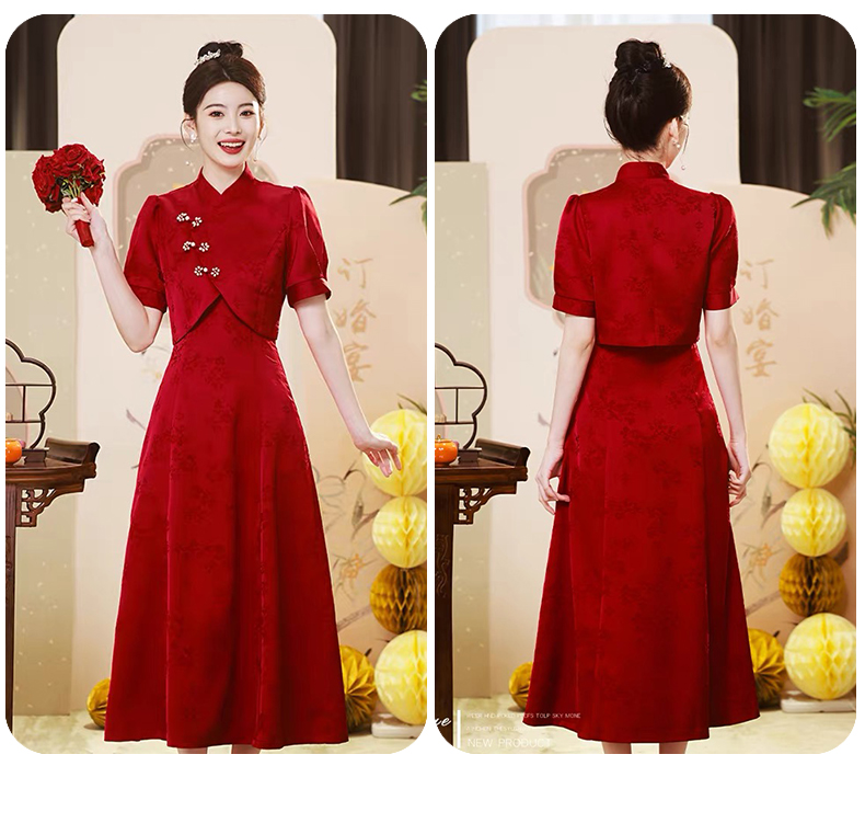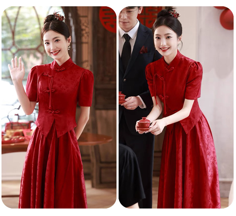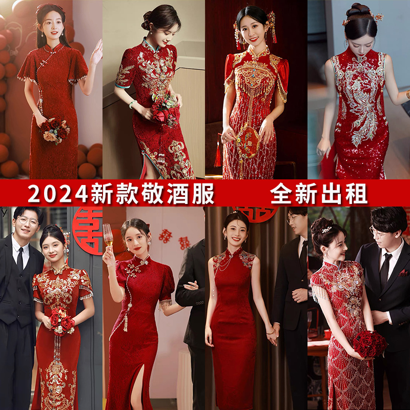 敬酒服旗袍红色改良新中式 新娘夏 订婚礼服裙女结婚小个子回门便装