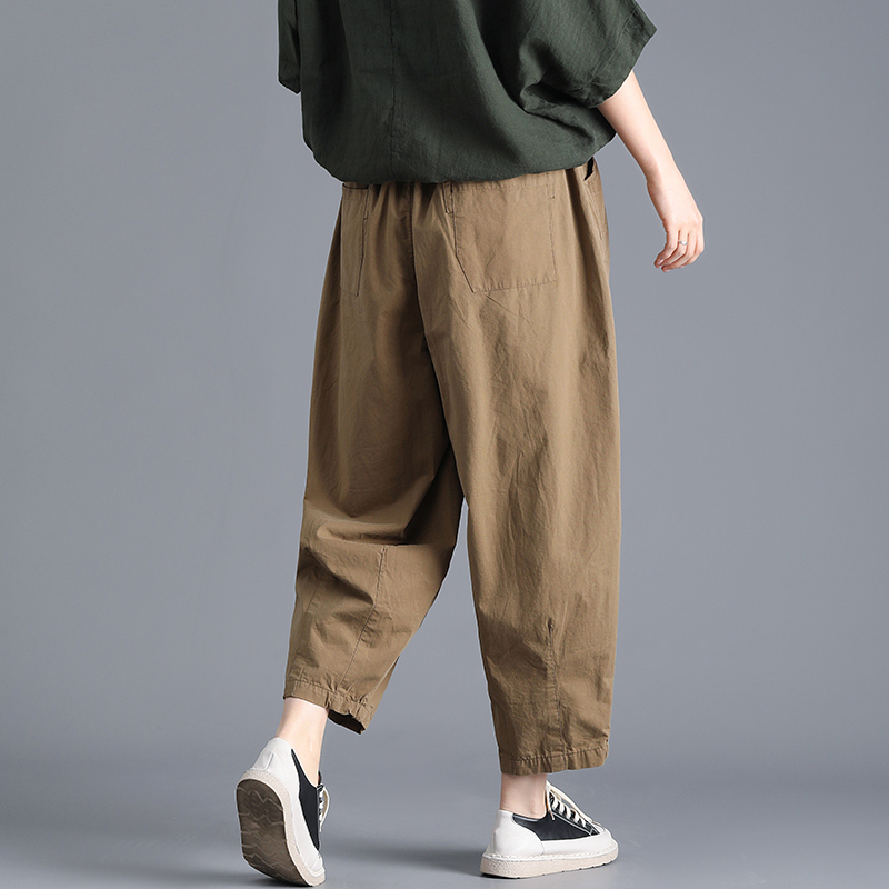 高腰文艺阔腿老爹裤 纯棉哈伦裤 九分宽松显瘦休闲萝卜裤 新款 女秋季