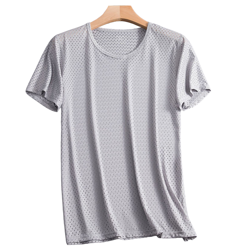 T恤男夏季 打底汗衫 薄款 体恤大码 潮 镂空透气速干半袖 冰丝网眼短袖