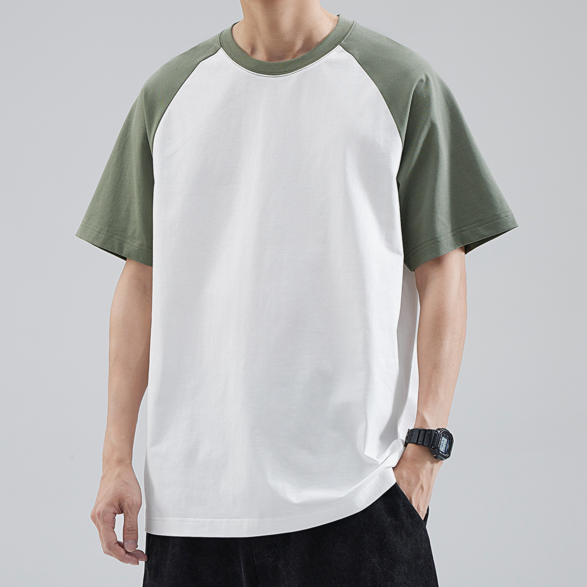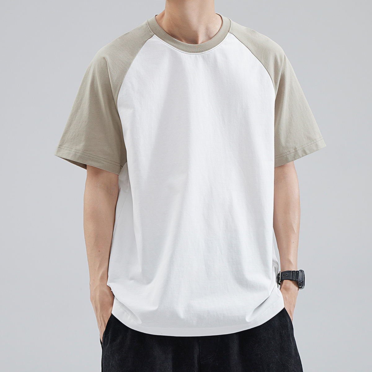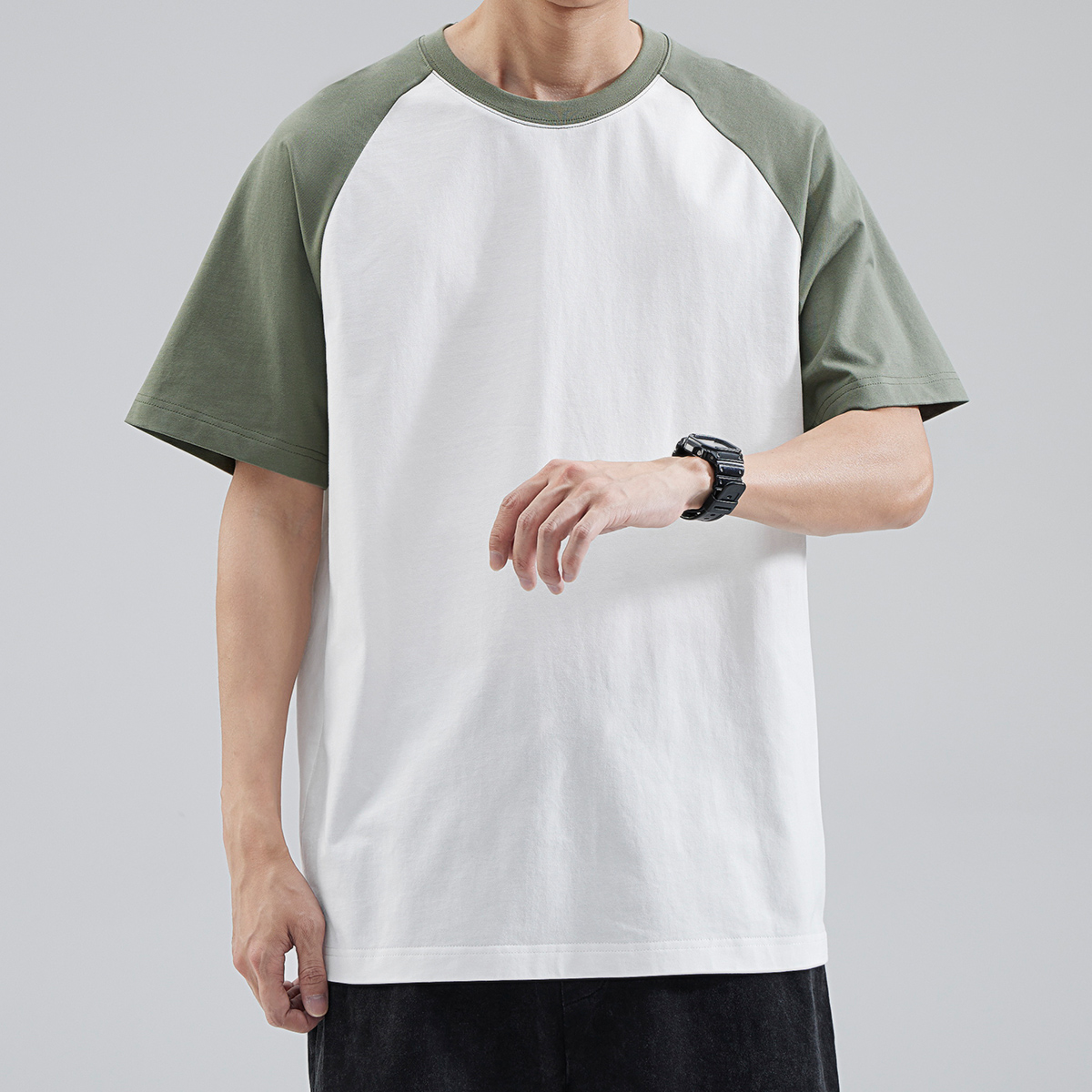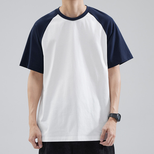 宽松撞色情侣纯棉打底衫 t恤男夏季 男 重磅插肩短袖 hansca280g美式