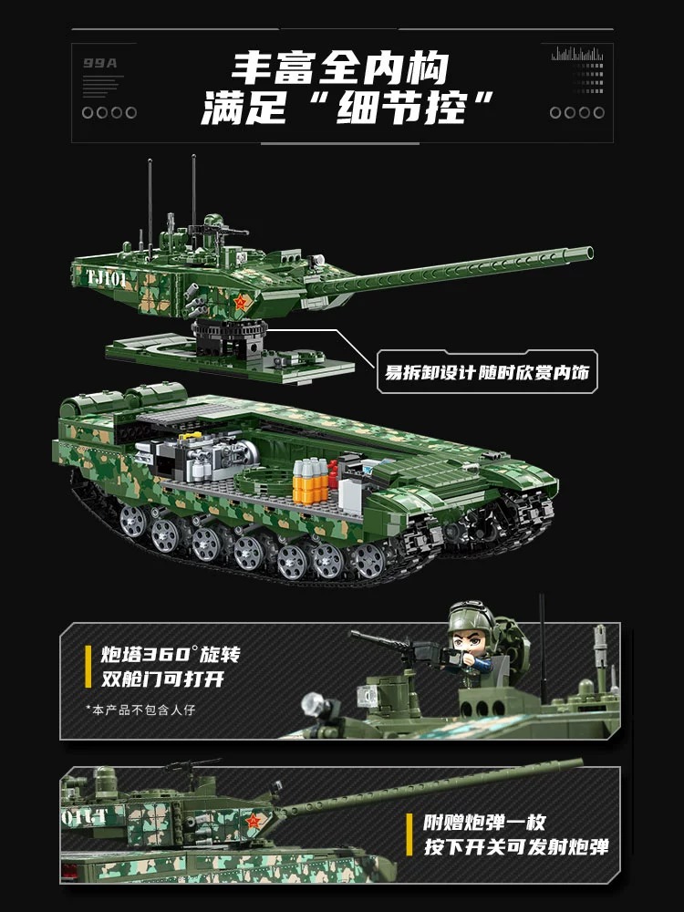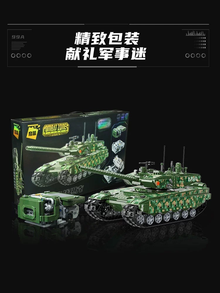 启蒙积木军事系列99A主战坦克模型摆件拼装 益智儿童玩具男孩23014