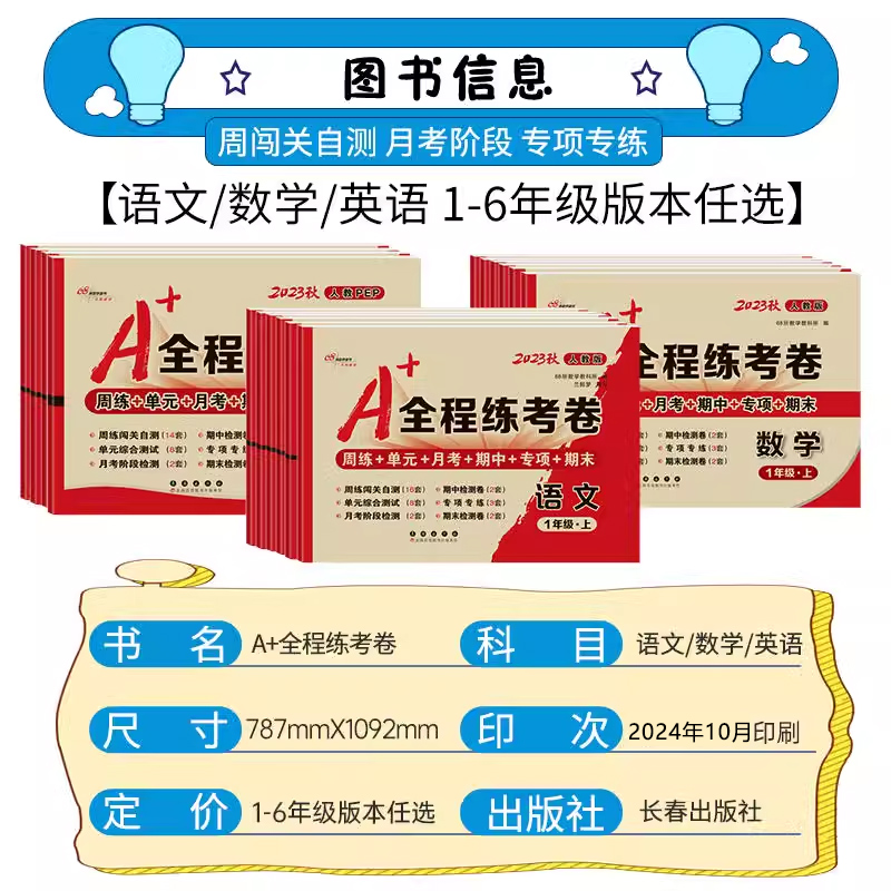专项训练练习题册单元 全程练考卷语文数学英语一二三四五六年级上册下册人教版 月考期中期末总复习试卷测试卷 68所小学A 2025新版
