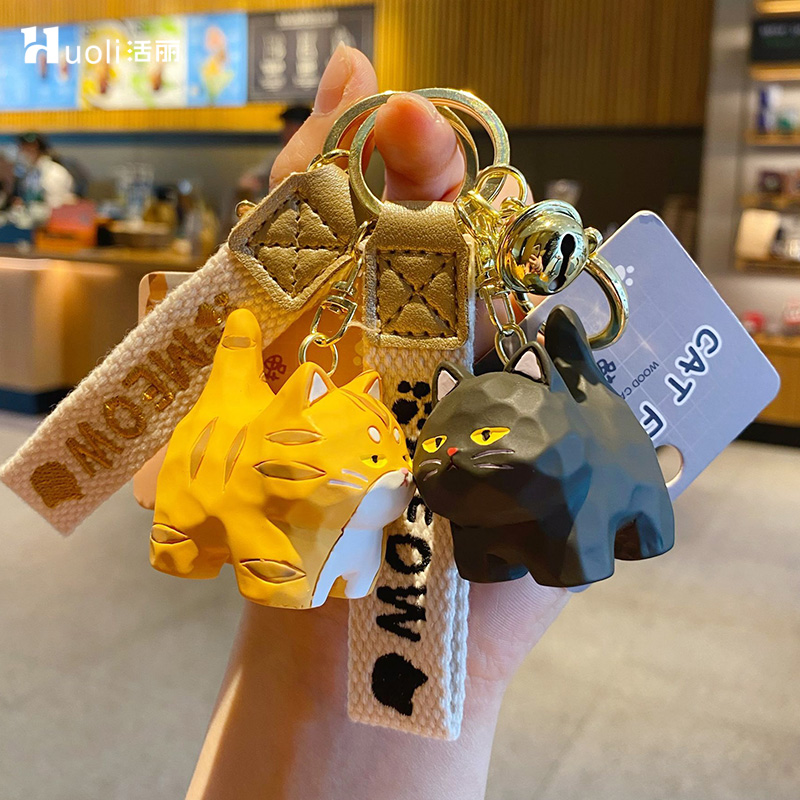 网红木雕风猫钥匙扣车钥匙挂件可爱书包挂件精致女情侣钥匙链饰品