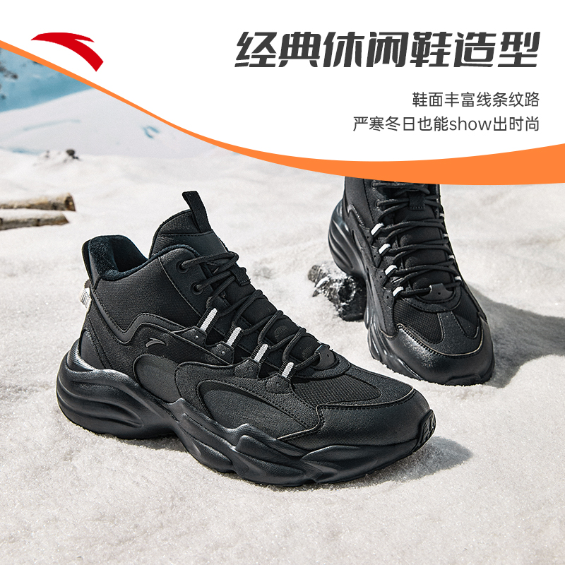 冬季 二棉鞋 加绒高帮鞋 2025新款 子皮面保暖防水运动休闲鞋 安踏男鞋