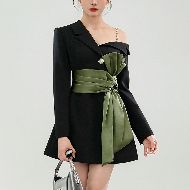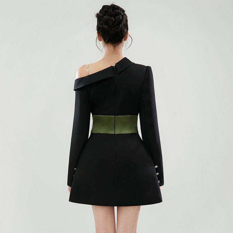 茬客气质时尚 风连衣裙2025秋冬不规则设计感收腰显瘦A字裙