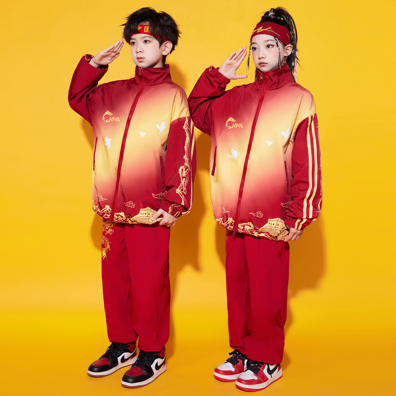 春秋小学生运动会演出服套装 中国红校服班服儿童表演服幼儿园园服