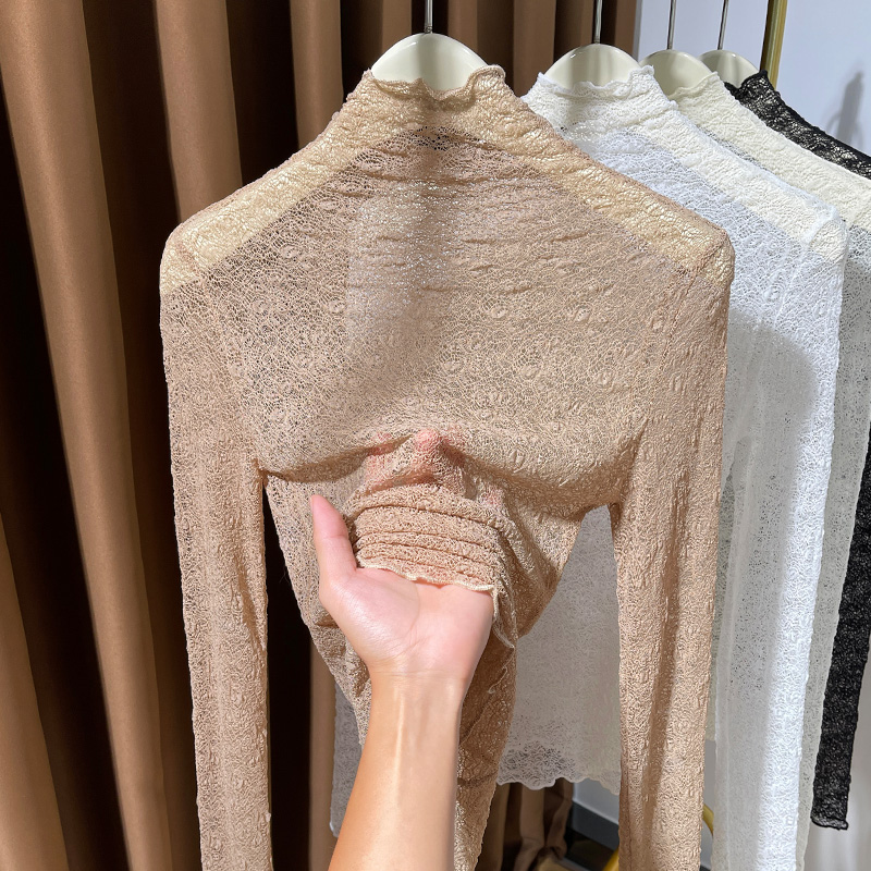 镂空上衣高级感网纱打底衫 高领蕾丝毛衣叠穿内搭小衫 2025秋冬新款