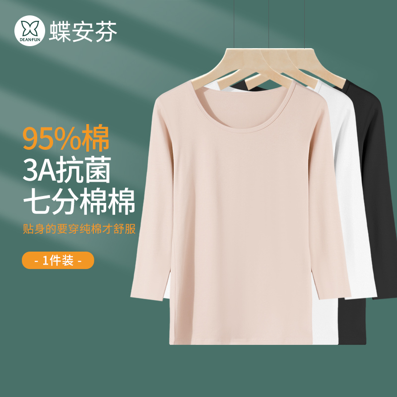 棉毛衫 七分袖 内衣秋冬隐形内搭保暖上衣修身 女纯棉秋衣半袖 打底衫