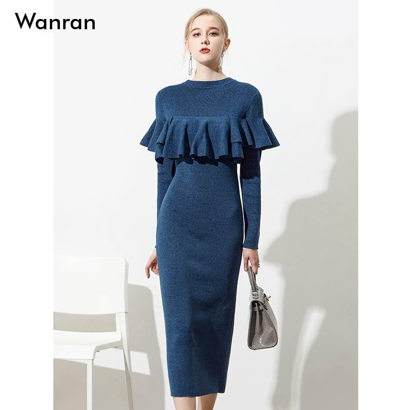 套头针织衫 2025新款 长袖 毛衣木耳边中长款 连衣裙 秋季 打底衫 女装