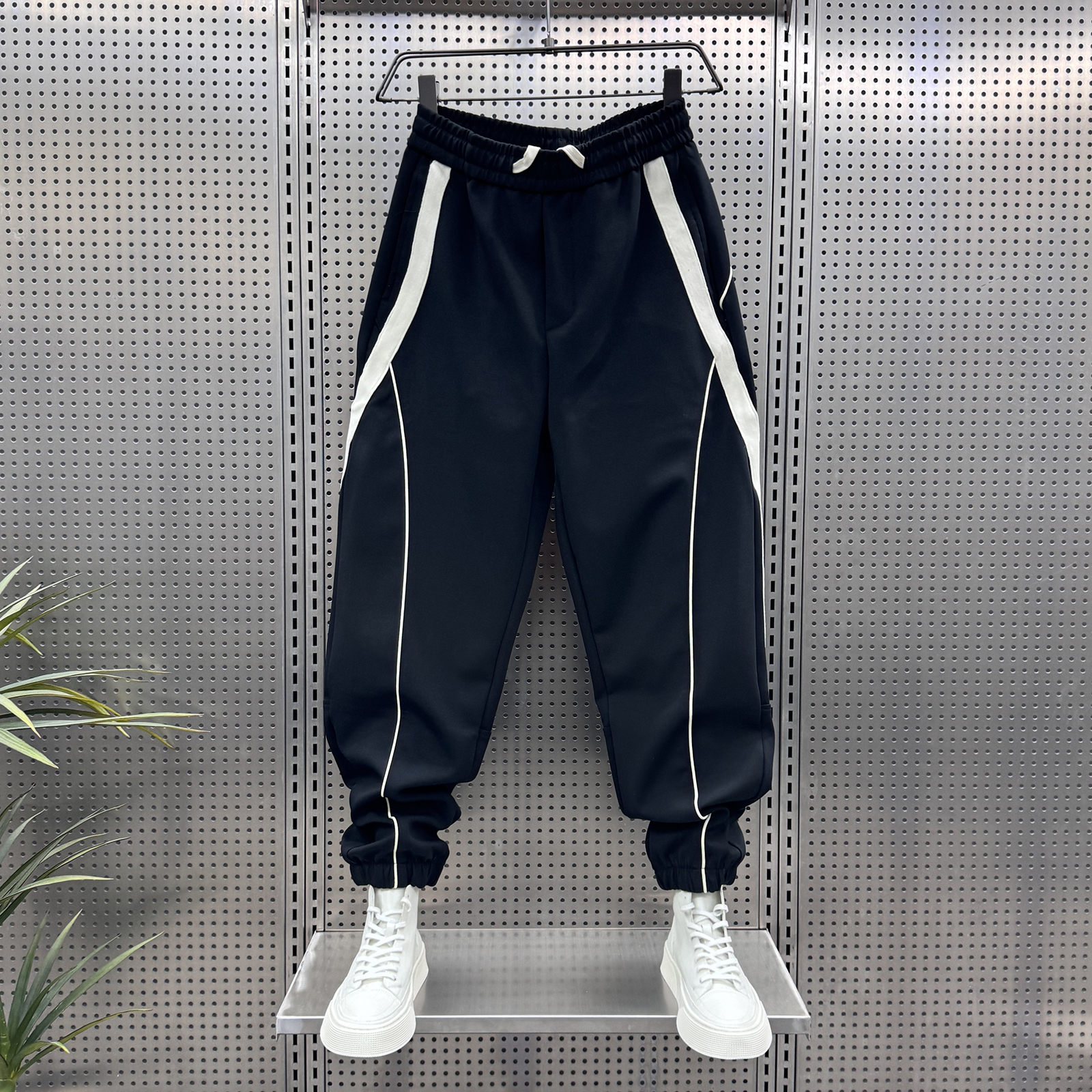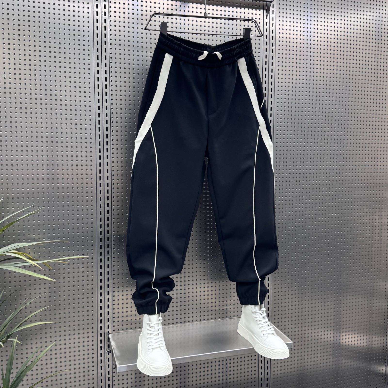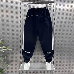 松紧腰百搭束脚哈伦裤 2025秋冬新款 弹力运动裤 个性 拼色宽松休闲裤