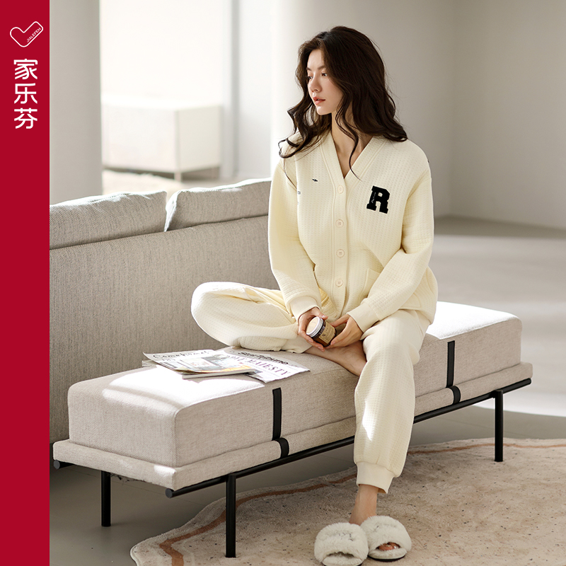 家居服秋冬款 加厚纯棉长袖 空气棉夹棉夹层 秋季 家乐芬睡衣女春秋款