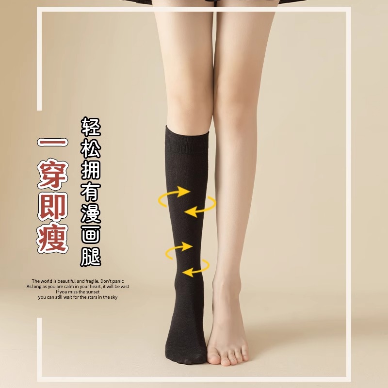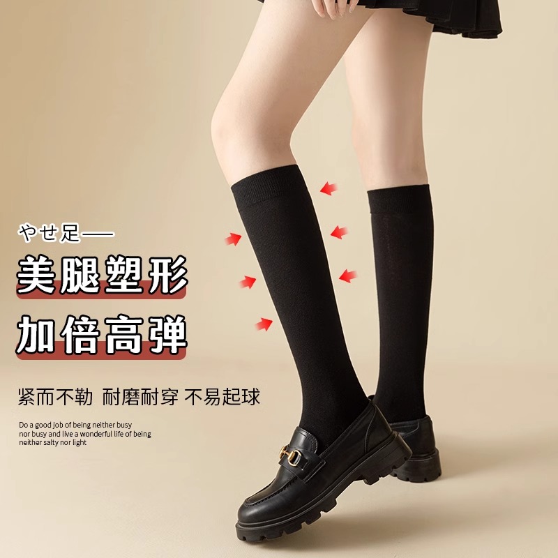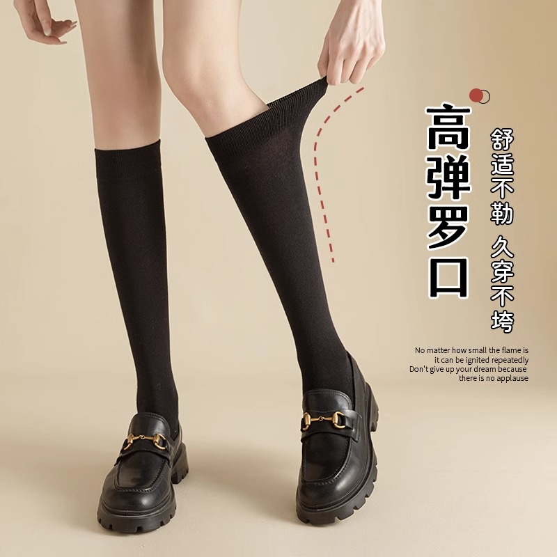 小腿袜子女中筒过膝堆堆袜纯棉无骨袜黑色jk长袜搭配小皮鞋 高筒