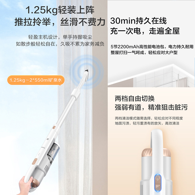 海尔无线吸尘器家用手持小型轻量大吸力除螨车载宠物吸猫狗毛G17W