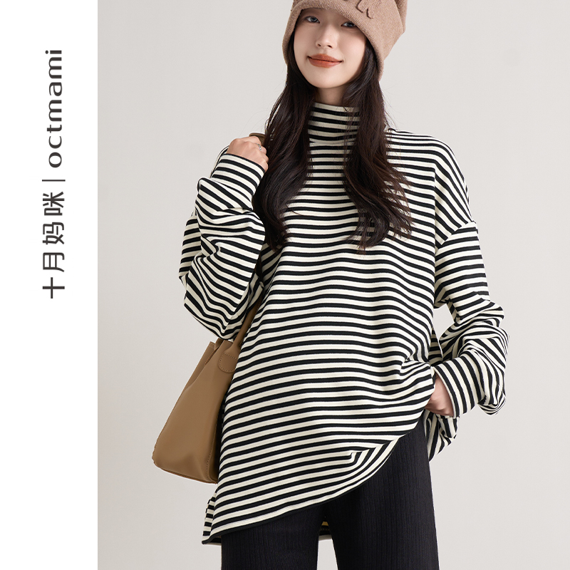 t恤宽松卫衣秋装 十月妈咪孕妇立领薄绒打底衫 内搭保暖上衣长袖