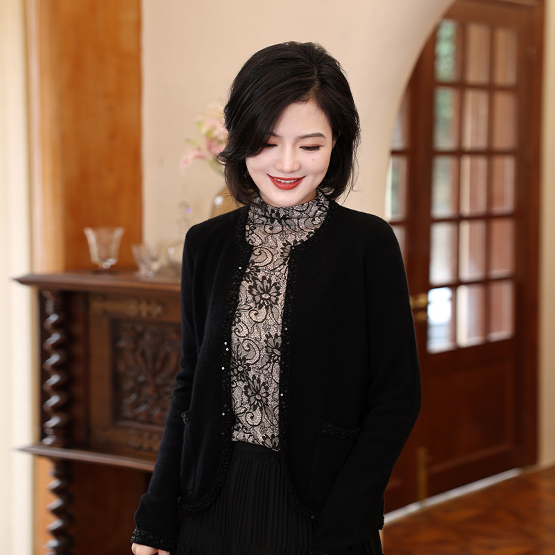 2025秋冬新款 女短款 毛衣外套 针织开衫 枫竺小香风亮片绵羊毛长袖