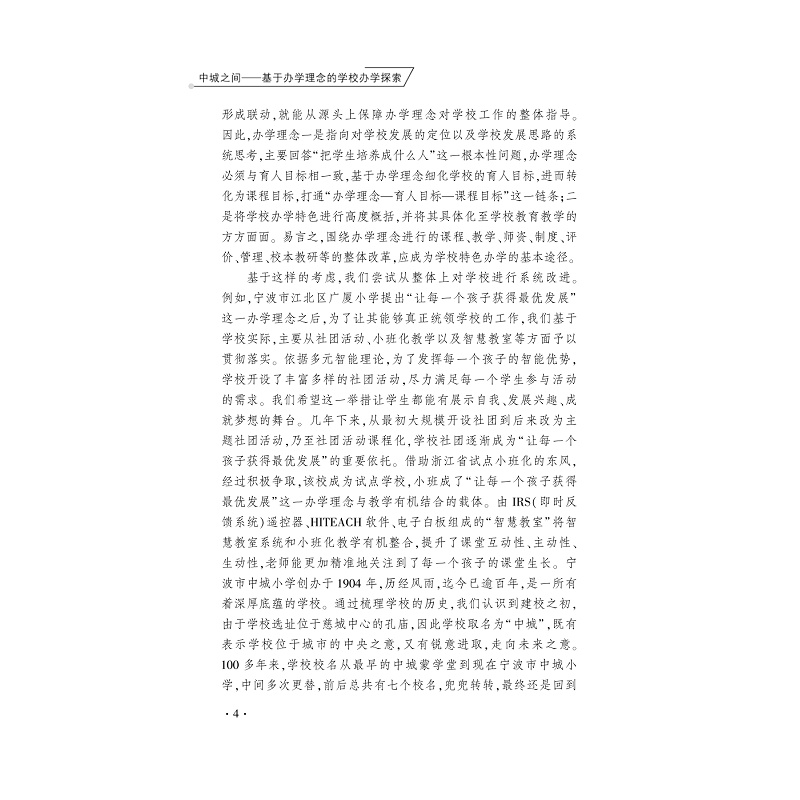 学校办学探索 浙江大学出版 中小学研究与改进丛书 徐扬威著 社 丛书主编汪明帅 中城之间——基于办学理念
