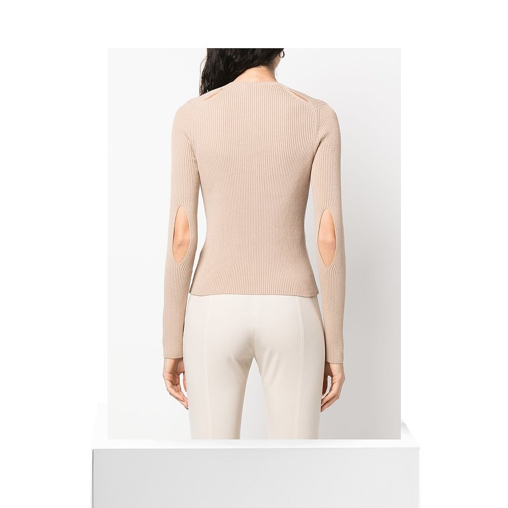 508966 宽松毛织斜肩上衣女装 三福套头毛衣女2025秋季 破洞镂空罩衫
