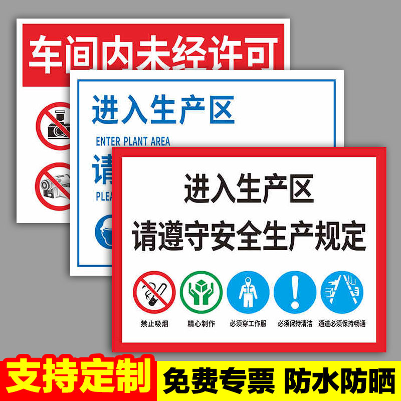 进入生产区严禁违章操作安全生产人人有责提示牌禁止明火车间内禁止吸烟标识牌禁止拍照摄像警示牌可定制