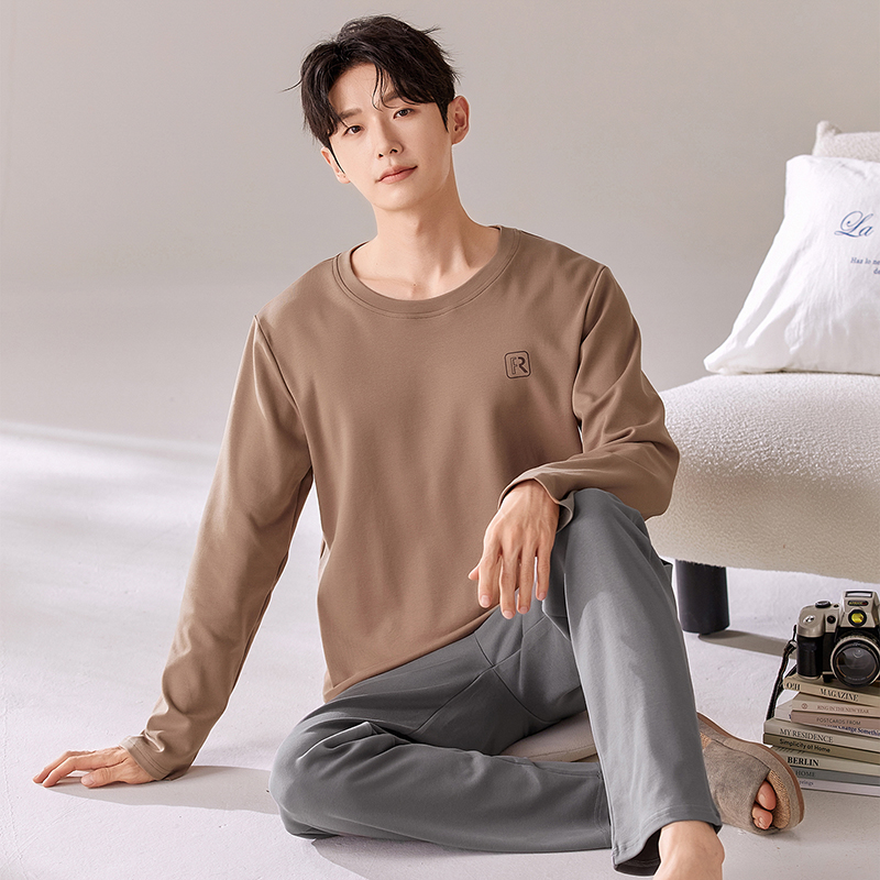 家居服套装 男士 青少年学生男孩大童2025年新款 纯棉长袖 睡衣春秋款