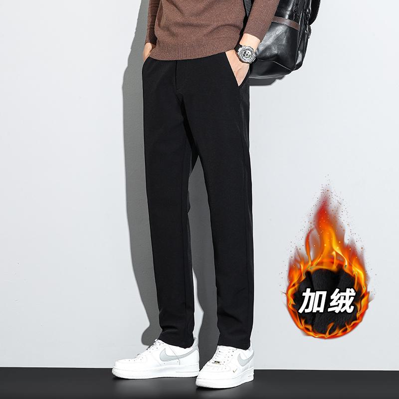 百搭黑色男士 修身 休闲裤 九分男裤 弹力舒适有型 小西裤 加绒厚款 秋季