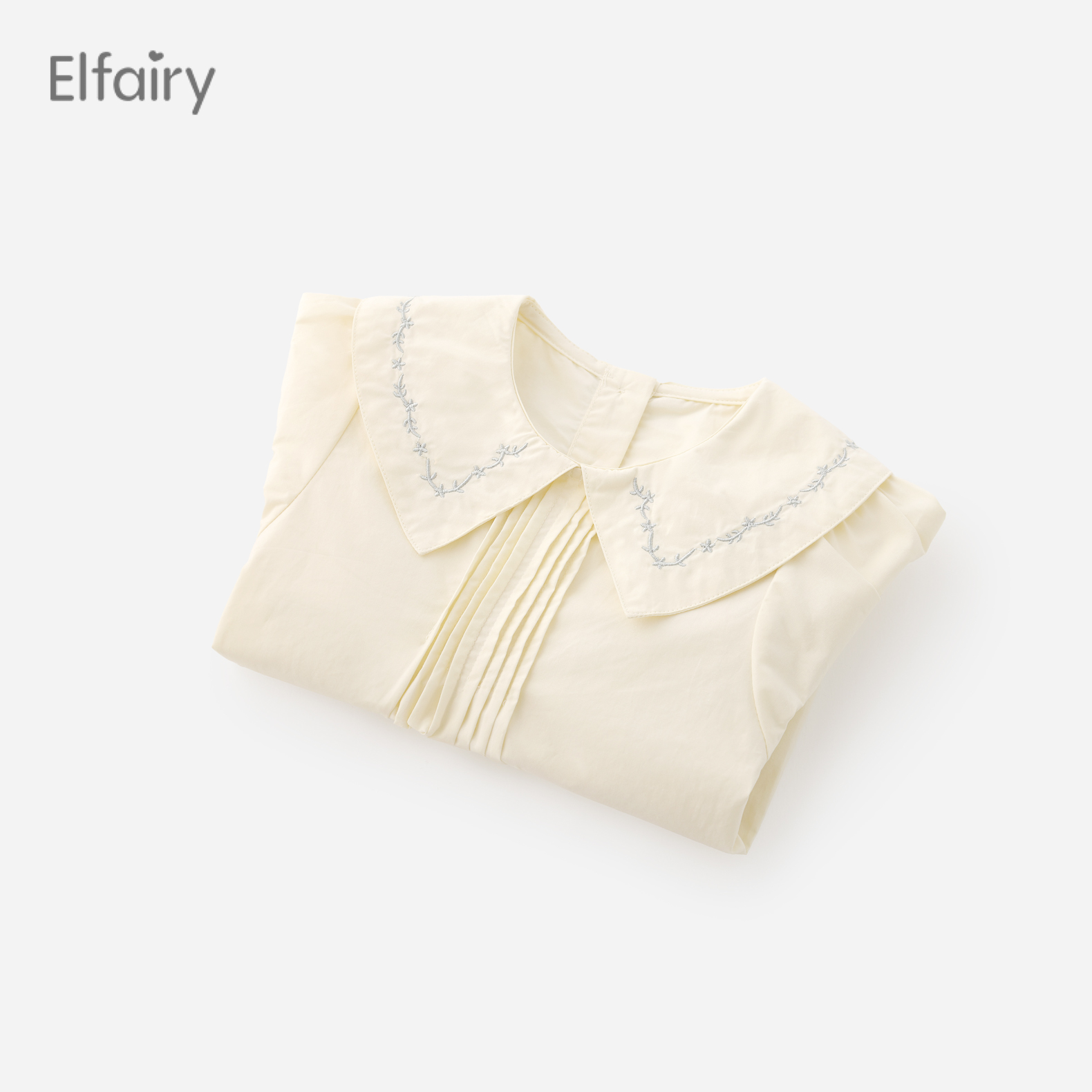 翻领衬衣纯棉上衣洋气 女宝宝秋装 Elfairy女童衬衫 儿童可爱娃娃衫