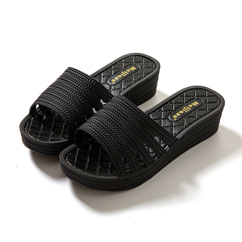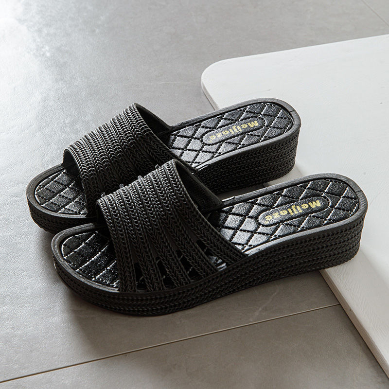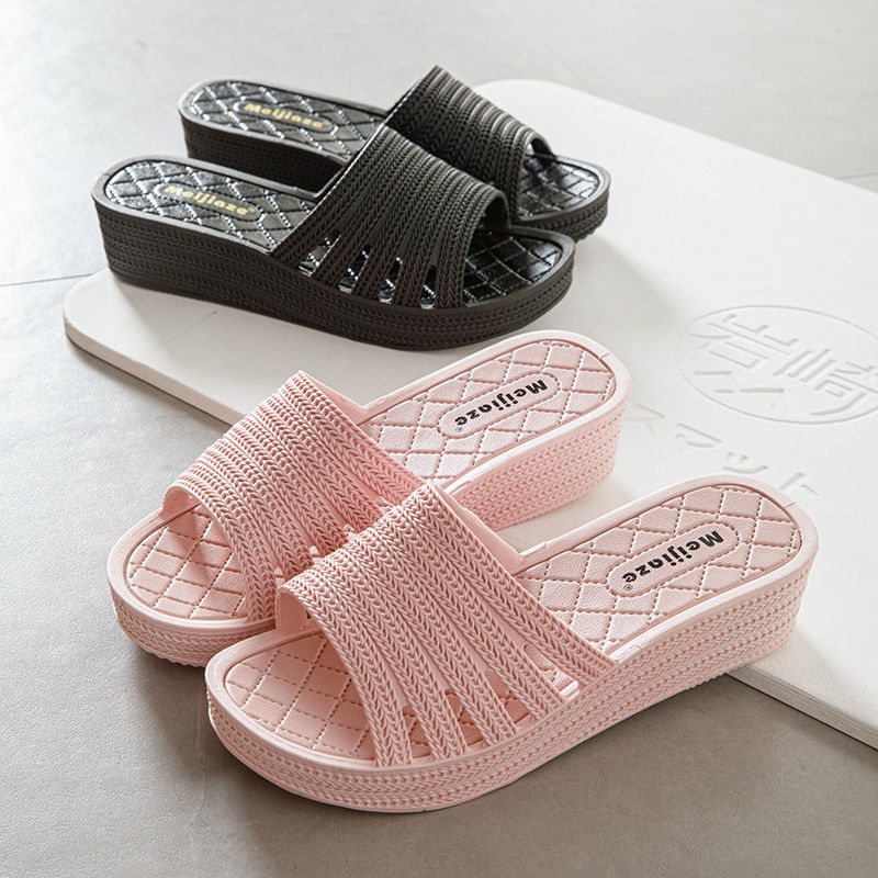 厚底坡跟防滑镂空透气时尚 女新款 百搭一字拖女 外穿凉拖鞋 中跟夏季