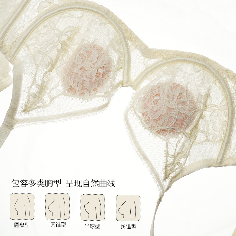梧桐本色大胸显小内衣女士超薄款 浪漫胸罩性感蕾丝防下垂文胸 法式