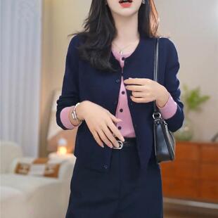 2025韩版 秋冬新款 宽松高级感小个子上衣外套毛衣 开衫 假两件针织衫
