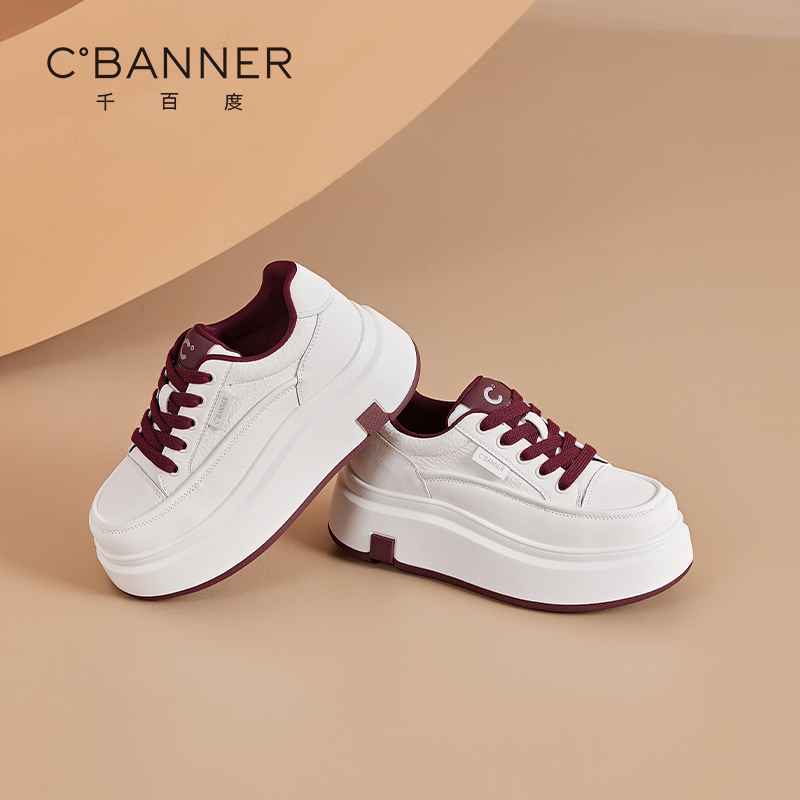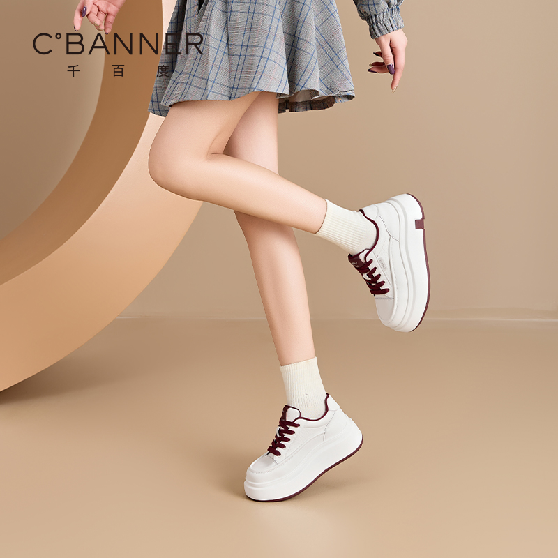 百搭舒适运动板鞋 增高轻便厚底小白鞋 女2025春秋新款 千百度休闲鞋