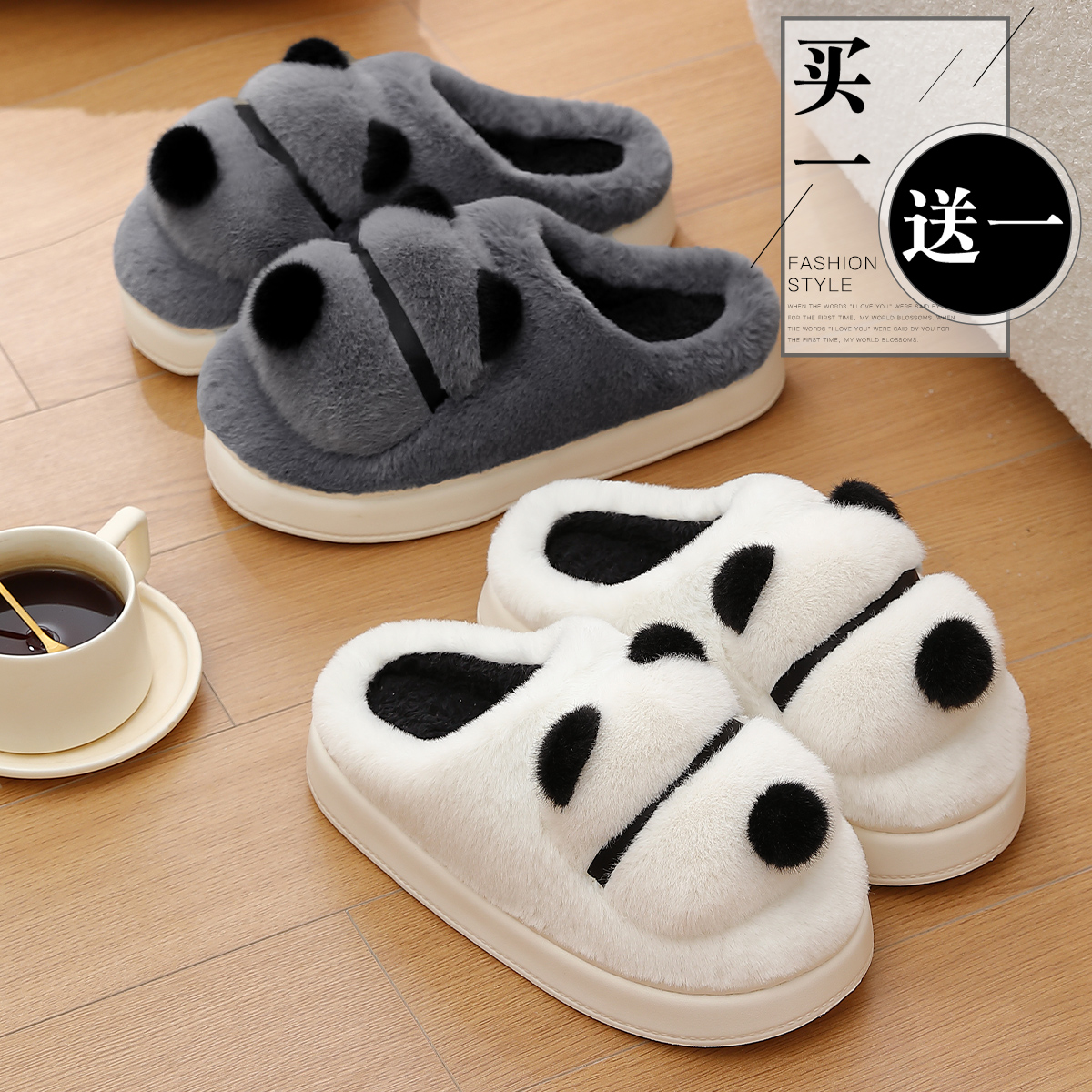 居家用情侣一对可爱毛绒保暖棉拖男冬天 秋冬季 买一送一棉拖鞋 女款
