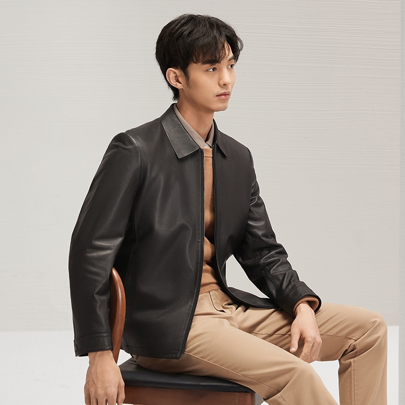 ICH 复古休闲夹克外套 MODE高级质感设计小众立领皮衣外套机车美式